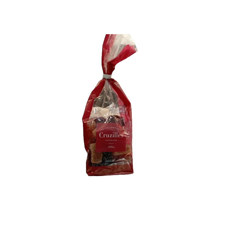 Cet assortiment de pâtes de fruit de chez Cruzilles se décline en pastilles aux parfums d'abricot, de cassis, de framboise, d'orange et de prune.