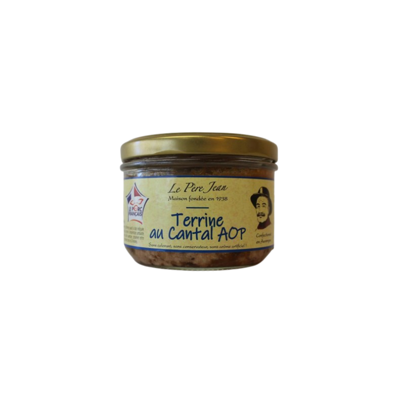 Pâté traditionnel à base de viande de porc aromatisé au Cantal. Cette spécialité est fabriquée sans colorant, ni conservateur