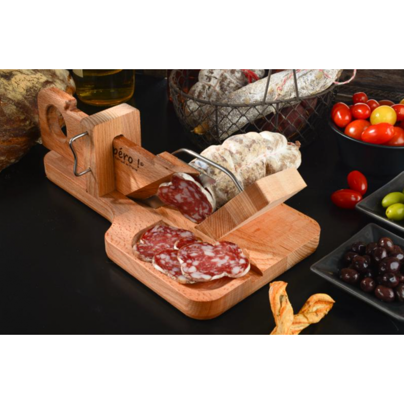 La Guillotine à saucisson est toujours prête à l'emploi. Facile, rapide, sans effort, elle participera à la réussite de vos apéros entre amis.