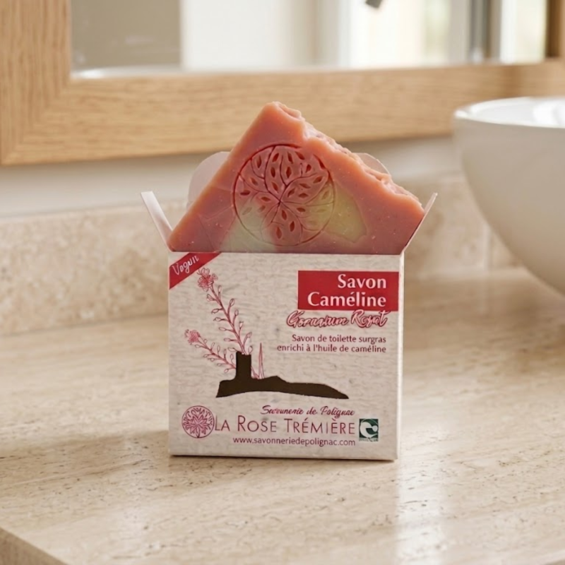 Savon Artisanal Caméline & Géranium - Peaux Sèches et Délicates