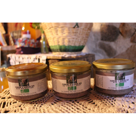 Lot de 3 terrines d'agneau BIO parfum au choix à préciser lors de votre commande (Poivre vert, Noisettes, Piment d'Espelette, Cognac ou aux Herbes).
