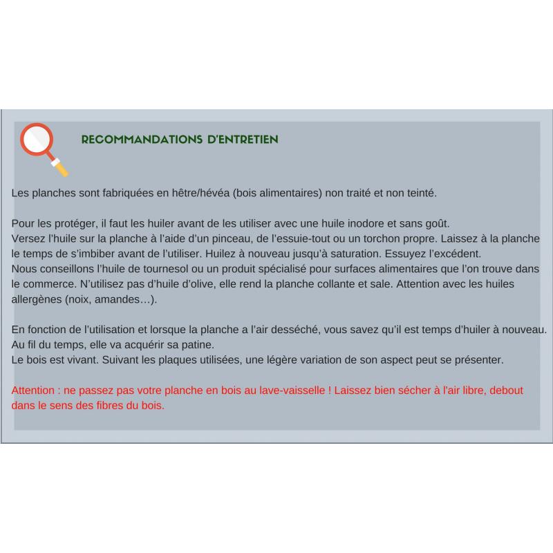 Planche rectangulaire Puy de Dôme en hévéa massif, lamellé collé, non traité et couteau Le Rustique