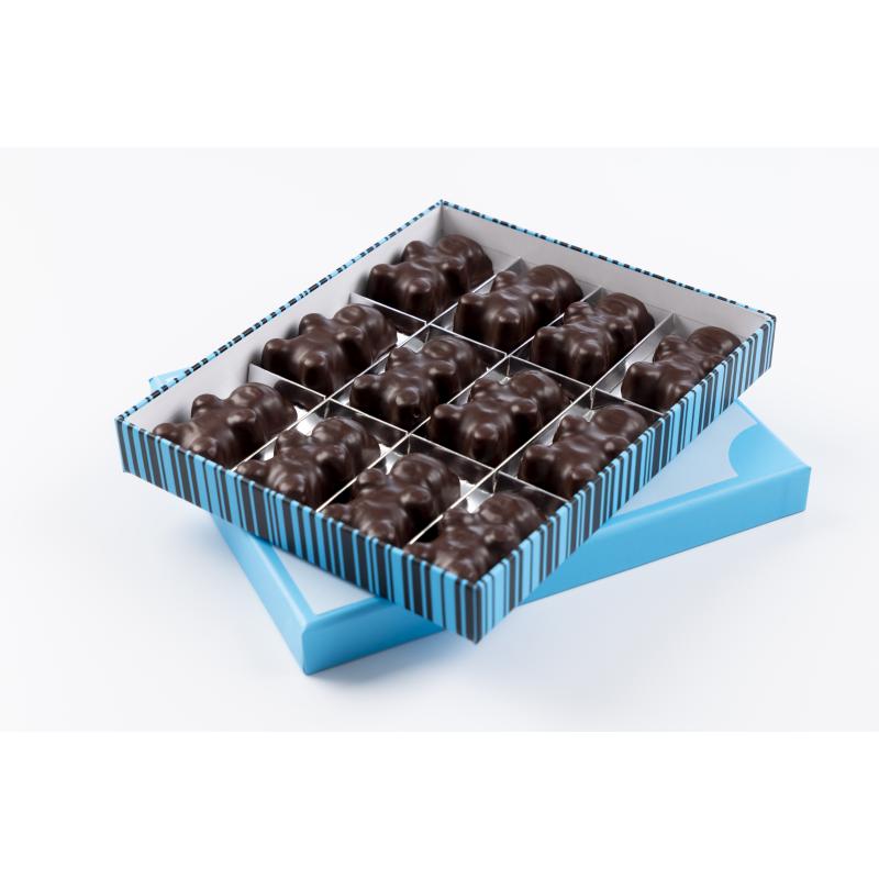 Oursons guimauve vanille de Madagascar enrobés de chocolat France noir 69% et France lait 36%