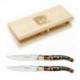 Coffret hêtre couteaux à steak Laguiole mitre laiton