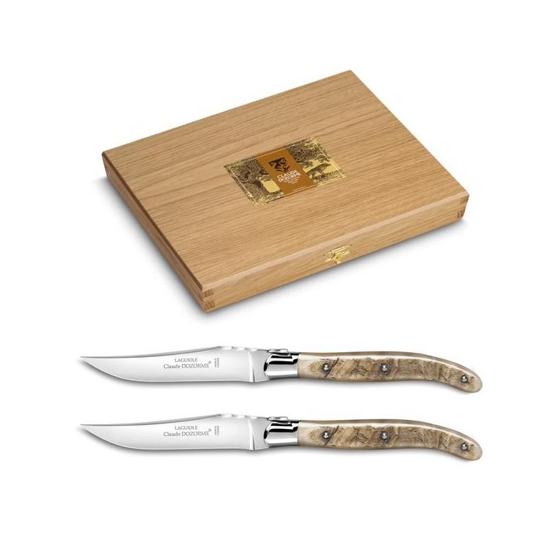 Coffret bois couteaux à steak Laguiole mitre inox manche corne