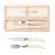 Ces couverts de table classiques possèdent un manche disponible en différents modèles : qui se décline en bois exotique, corne claire, méthacrylate naturelle ou écaille. Ils sont délivrés dans un coffret hêtre de 2 places, et les manches en méthacrylate sont compatibles avec un lavage au lave-vaisselle.