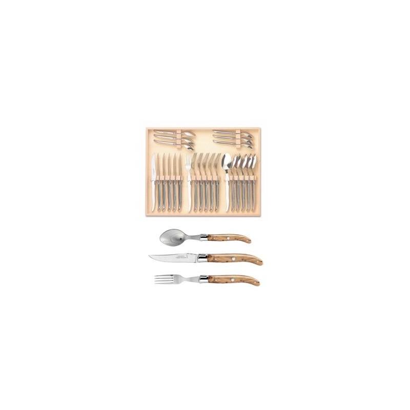 Coffret hêtre ménagère 24 pièces Laguiole mitre inox manche bois
