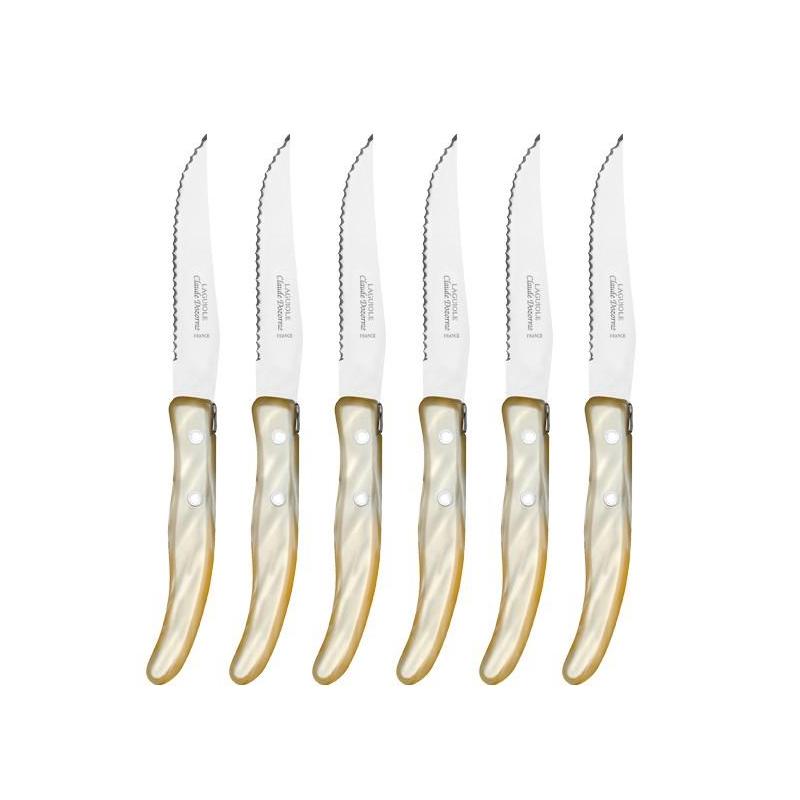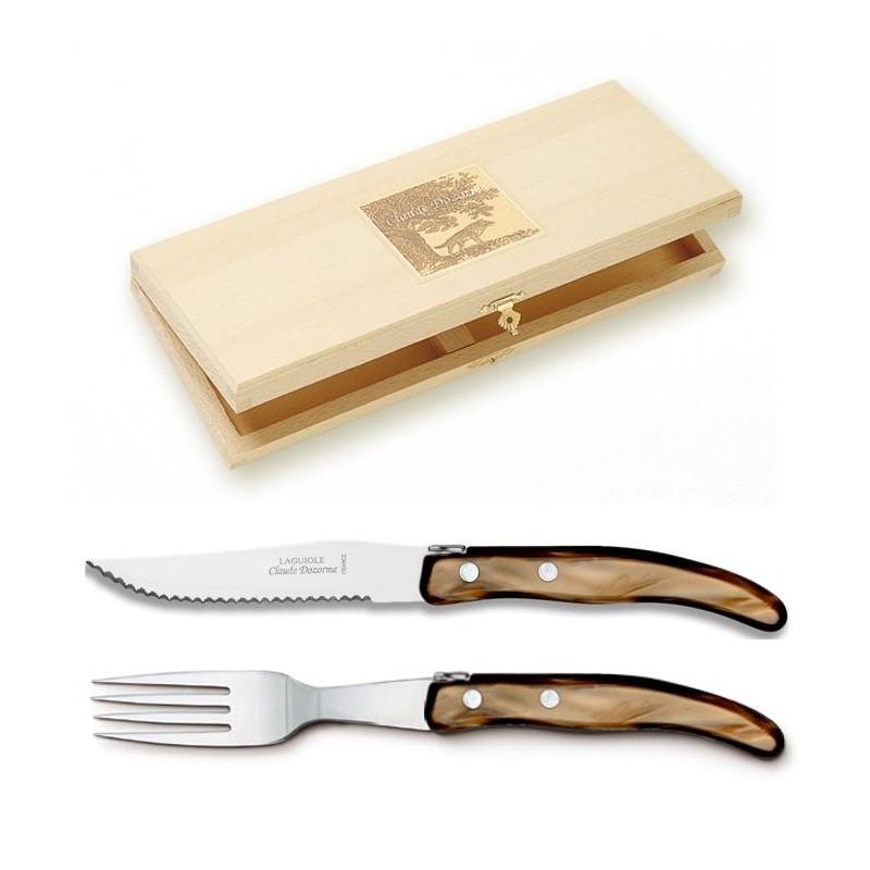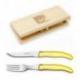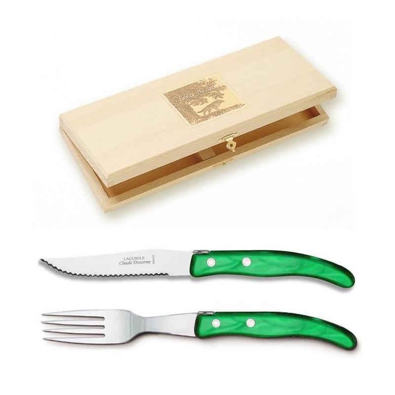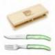 Coffret hêtre berlingot 6 couteaux et 6 fourchettes manche nacrine unie