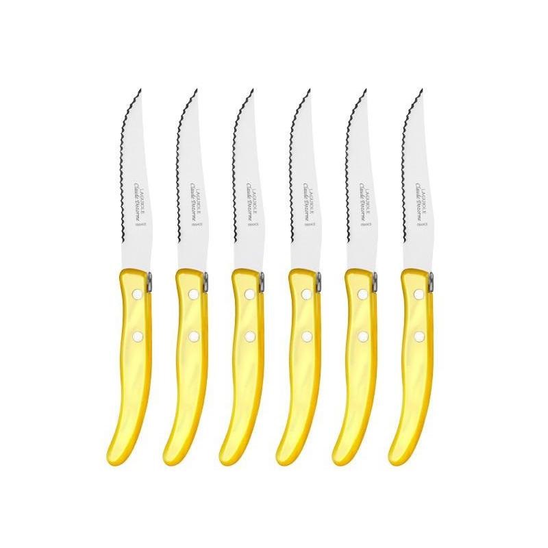 Ce coffret de couverts de table est composé de 6 fourchettes et de 6 couteaux à steak. Les couleurs des manches peuvent être assortis ou dissociés, composez un service qui vous ressemble grâce à nos dix-neuf teintes disponibles !
