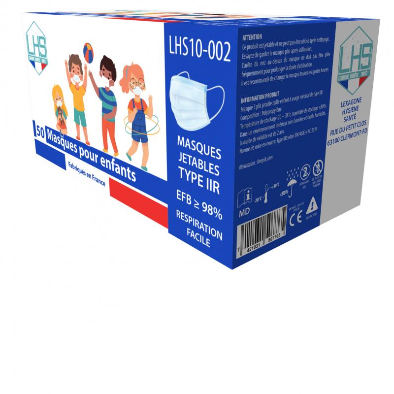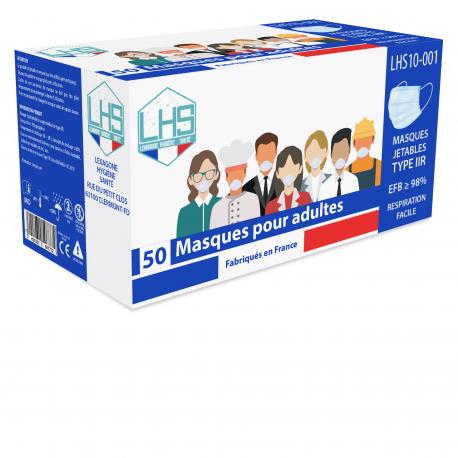 Masques chirurgicaux jetables taille adulte, fabriqués à Clermont-Ferrand, boîte de 50