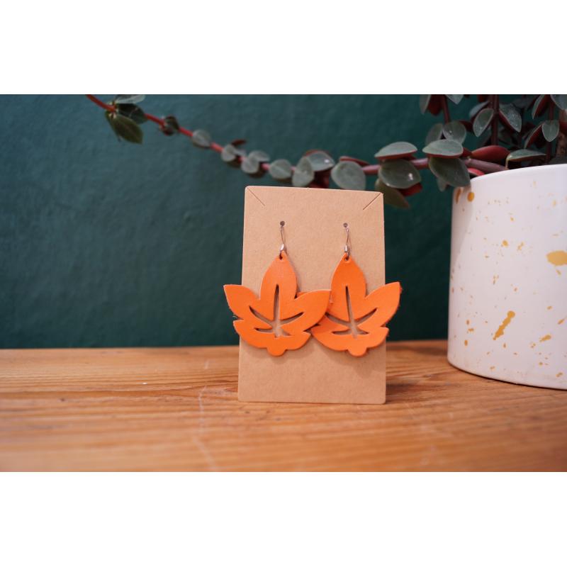 Boucles d’oreilles en forme de feuille en cuir de veau.