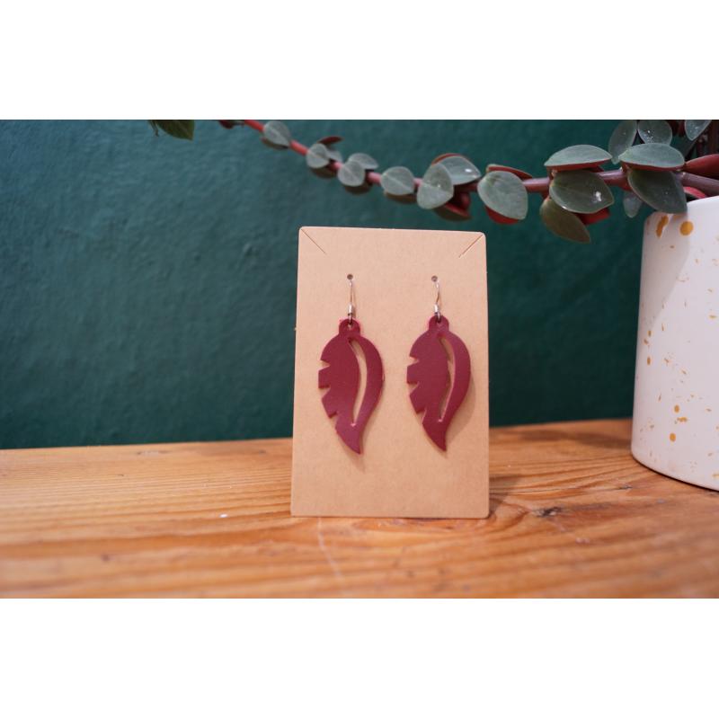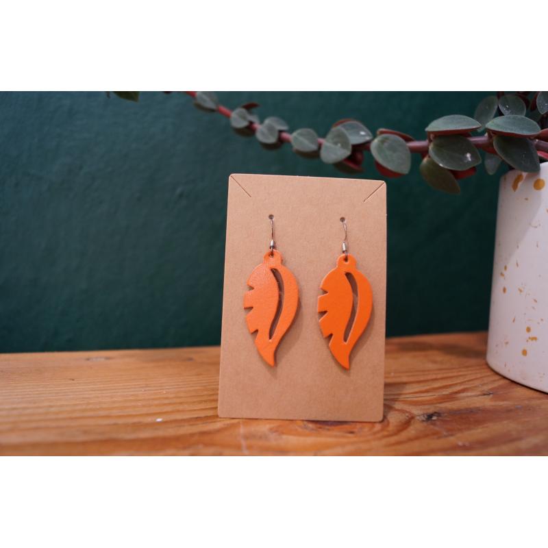 Boucles d’oreilles en forme de feuille en cuir de veau.