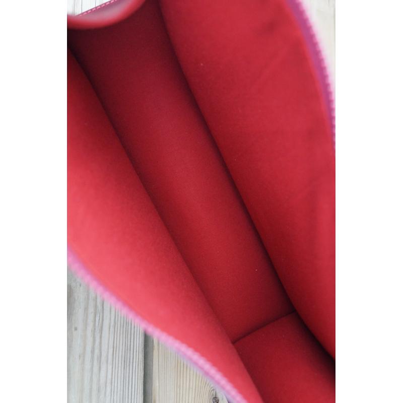 L’intérieur est doublé d’un tissu uni. Il y a aussi une teinte sur les tranches à l’extérieur. Elle se ferme à l’aide d’une fermeture éclair de même couleur.