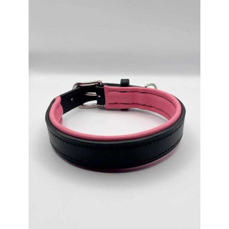 Collier en cuir noir tannage végétal avec mousse intégrée en cuir de veau ou de chèvre. Plusieurs coloris disponibles.