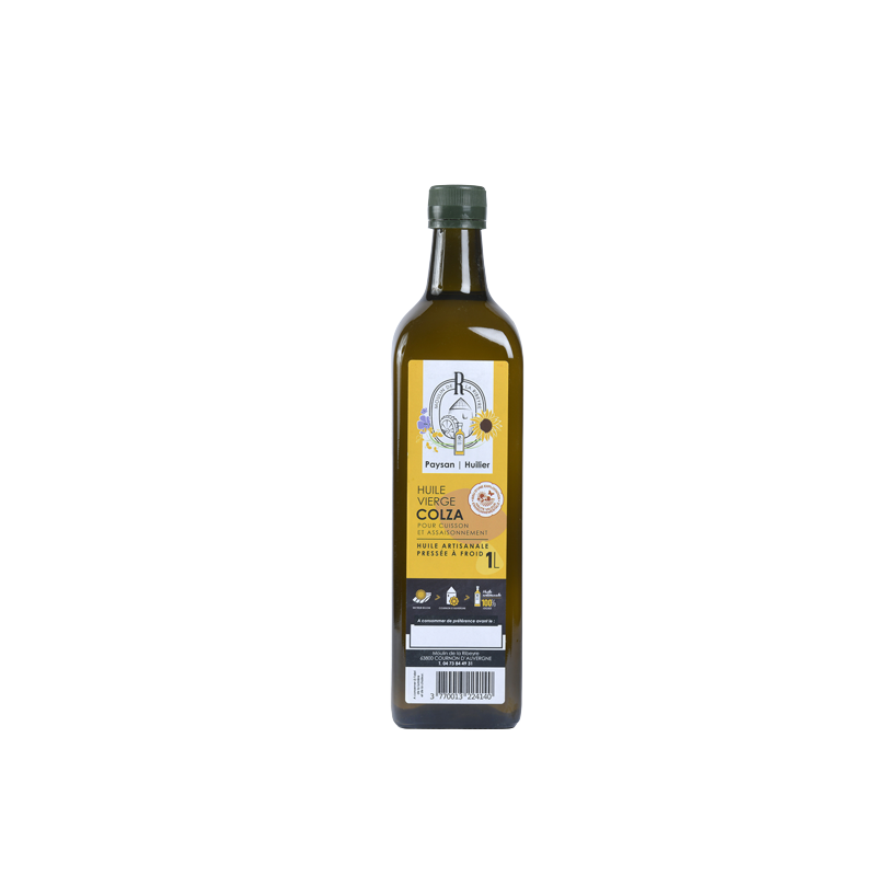 Huile de Colza traditionnelle artisanale, 1L, première pression à froid, sans améliorants ni additifs, issue du colza de notre exploitation céréalière située sur le secteur de Billom.