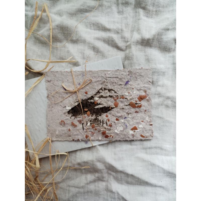 Gravure réalisée d'après une illustration réalisée à la plume, à l'aide d'une graveuse laser, sur papier recyclé fait main à l'atelier. Chaque gravure est unique. La découpe des bords, la profondeur de la gravure varie en fonction des supports. Personne n'aura la même carte que vous!