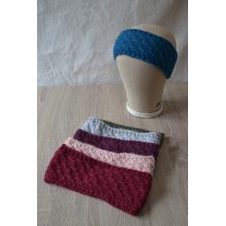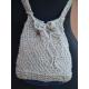 Le fond du sac, l’anse et le lien pour fermer sont en crochet, le corps du sac en tricot : point mousse et point de demi-toile.