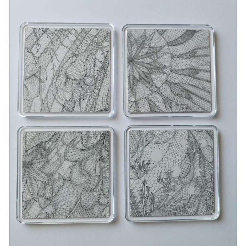 lot de 4 sous verres avec la représentation des dessins les 4 saisons. Dim : 10 x 10 cm le sous verre.