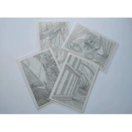 Lot de cartes de collections qui comprend sur les toits de l' abbatiale, le Voilier, Pierrot et Colombina et Mr Nounours.