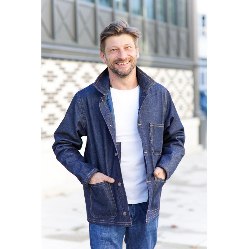 Veste bourgeron en Jeans pour hommes, 2 poches basses et une poche poitrine ( idéal pour votre smartphone ).