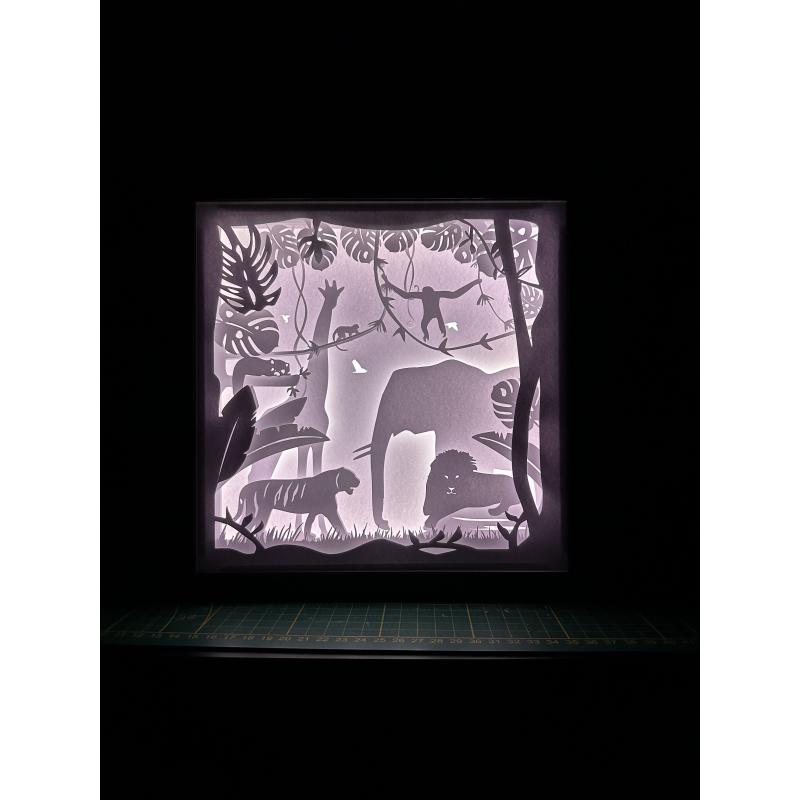 Transformez votre espace en une oasis tropicale avec ce cadre lumineux "Monde Animal". Cette création magique vous transporte au cœur de la jungle et de la savane, où 10 animaux majestueux règnent en maîtres.