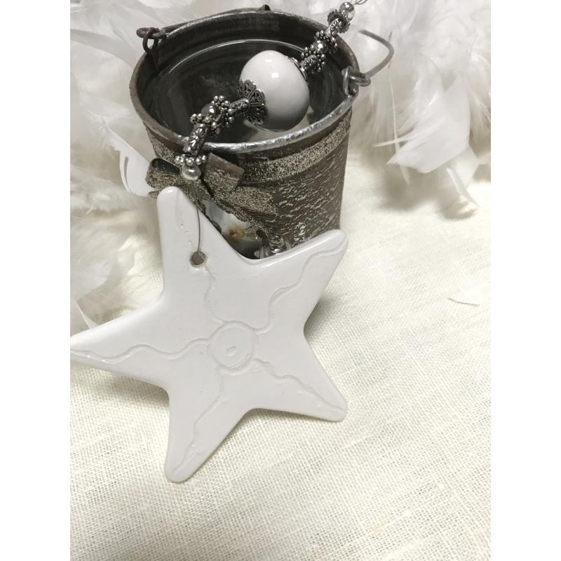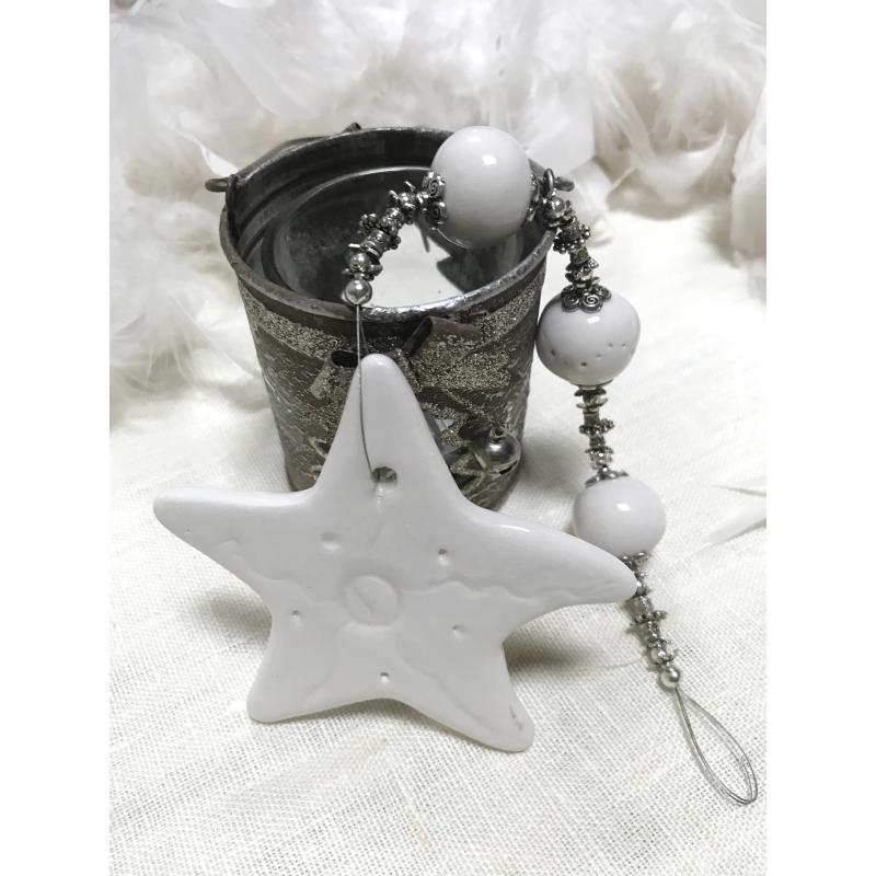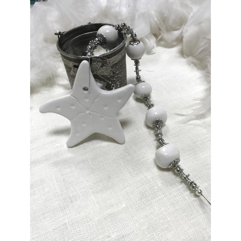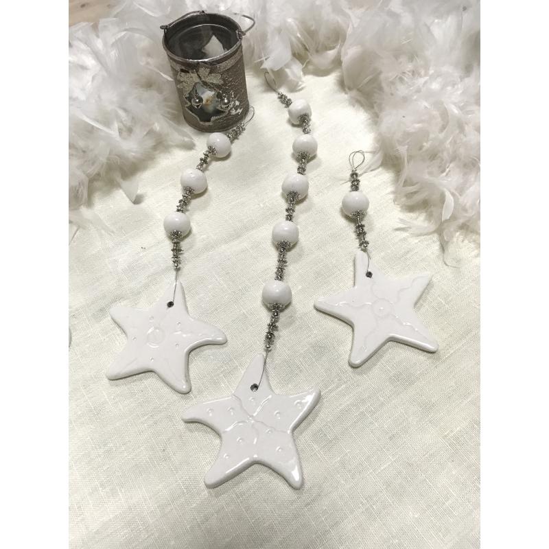 Des guirlandes composées de perles et d'une étoile (l'étoile est décorée et émaillée sur les 2 faces - décors variables selon les guirlandes en stock).