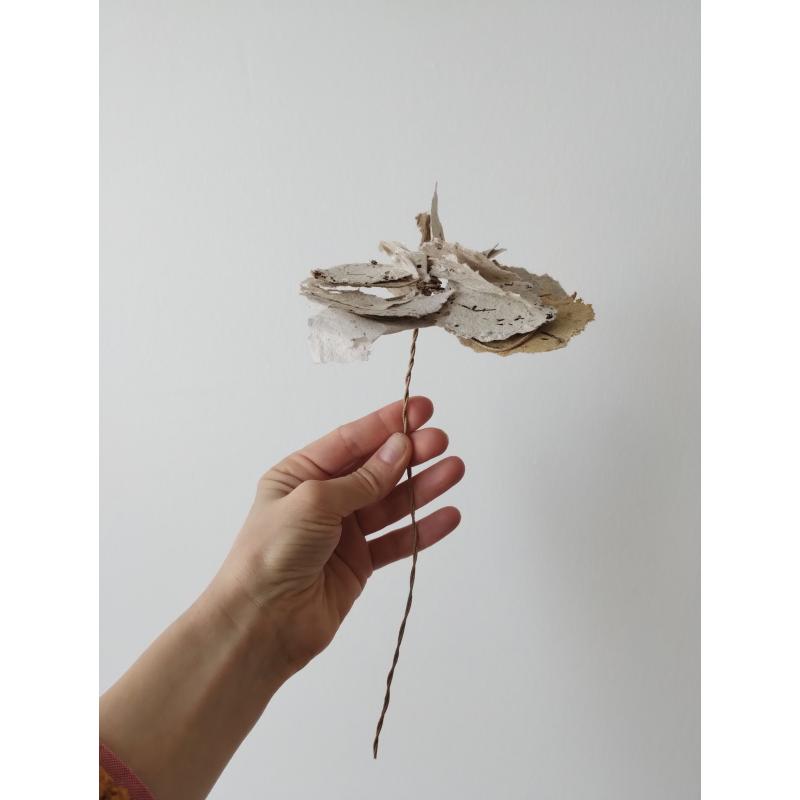 Structure de la fleur en fils d'aluminium cuivré ou en fil de fer enrobé de papier kraft brun clair.