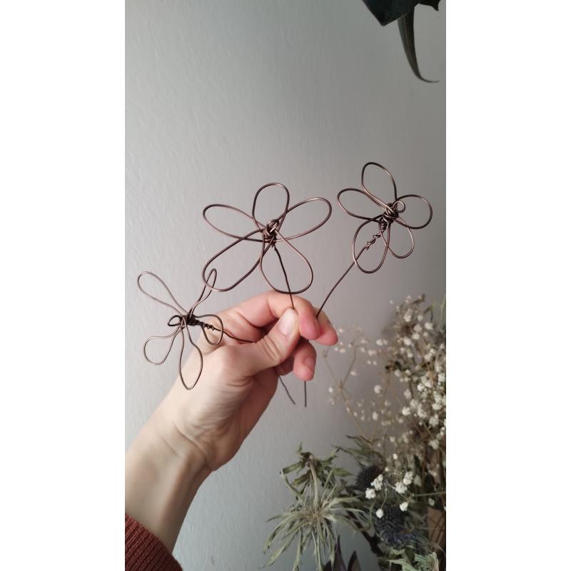 Les structures filaires peuvent se tordre pour épouser la forme que vous souhaitez. Une fois les pétales et feuillages en papier décrochés, la fleur est décorative et peut prendre place dans un vase, un pot de fleur, autour d'une poignée de porte, être utilisée comme marque-page...