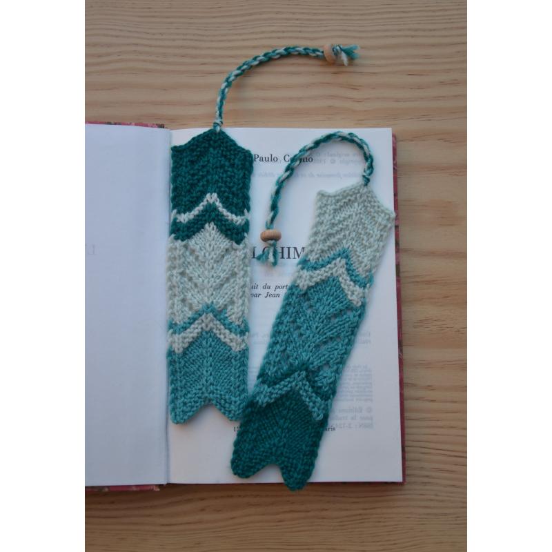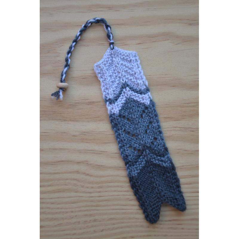 Joli marque page graphique en forme de chevron et tricoté à la main en laine 100% mérinos (Filature Fonty)