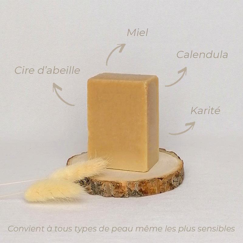 Enrichi en miel et calendula, ce savon doux est idéal pour toutes les peaux, même les plus sensibles. Il nettoie et protège délicatement la peau de votre corps et de votre visage.