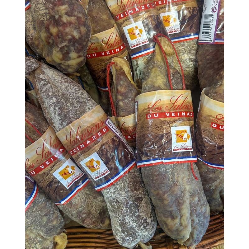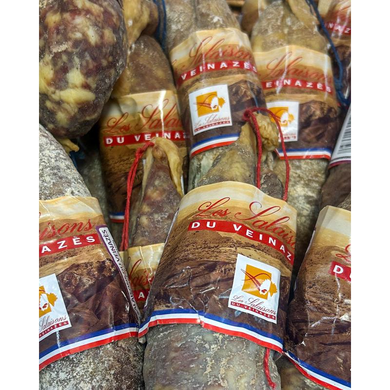 Le saucisson sec, fabriqué par la boucherie Bornes, forte d’une expérience de plus de trente ans et qui s’attache à la fabrication de la charcuterie et salaisons comme autrefois en se servant des éleveurs locaux.