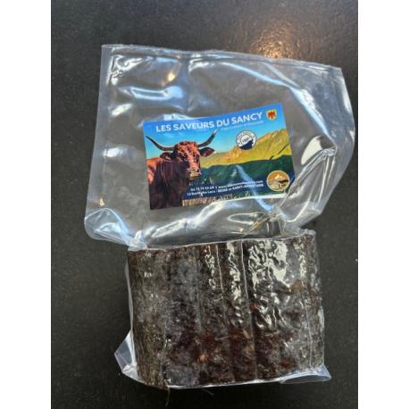 Notre Boeuf salers séchée est fabriquée dans nos ateliers de Besse et Saint-Anastaise avec de la viande issue de la région. 100% boeuf, et très peu gras, il accompagnera idéalement vos planches apéritives et pique-niques.
