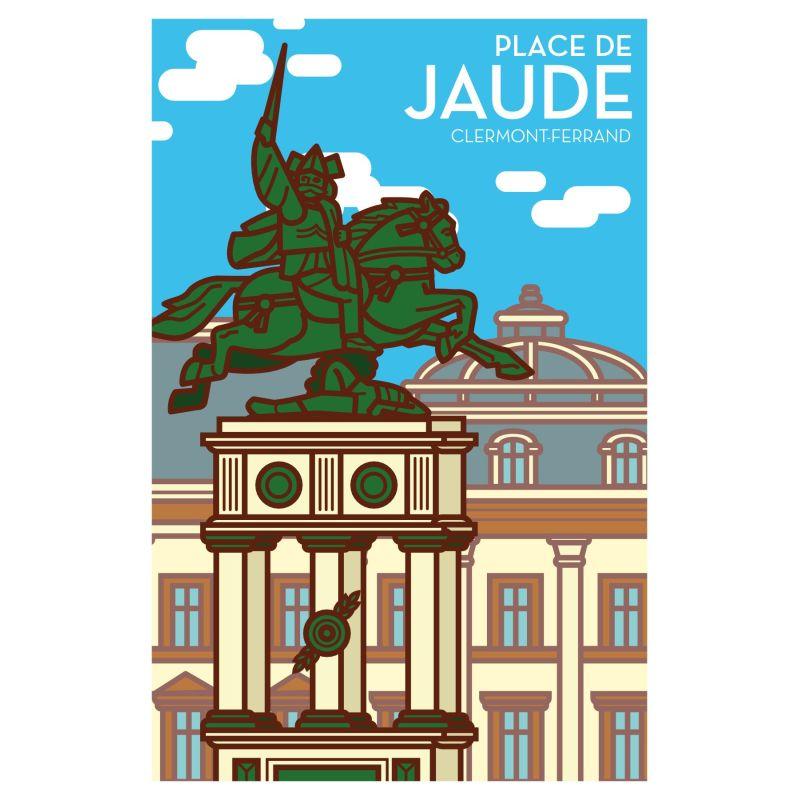 Découvrez un aperçu de la place de Jaude (dites "Jôde"!) et de la silhouette symbolique du plus fameux des Arvernes: Vercingétorix! Au loin se profile l'architecture classique de l'Opéra de Clermont-Ferrand, et sa coupole par-dessus les toits.