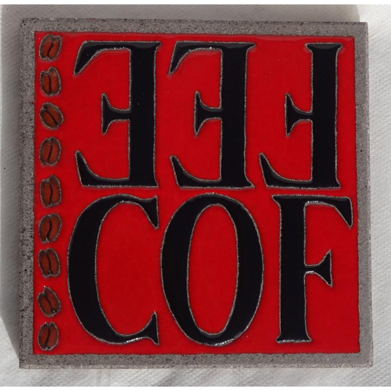 Dessous de plat en lave émaillée avec un décor autour du café, lettres noires fond rouge et grains de café sur le côté, dimensions env. 15x15 cm, présence de 4 patins en dessous. Création unique et faite avec passion par l'artisan émailleur sur lave. Un souhait de personnalisation? Une question concernant la livraison? N'hésitez pas à contacter l'artisan en direct au 06.02.13.24.59 ou par mail : emailetmerveilles@gmail.com