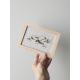 Le papier est réalisé de manière artisanale à la main, à partir de papiers et cartons voués au déchets. Ceci dans une démarche éco-responsable de prise en compte de l'environnement comme de sensibilisation au tri et à la revalorisation des déchets. Selon les papiers et cartons ayant servis à la réalisation des feuilles, les cartes auront des teintes différentes. De nouvelles teintes peuvent être créées à l'aide d'encres végétales réalisées à l'atelier. Le papier comportent des irrégularités de part la manière dont il à été fabriqué.