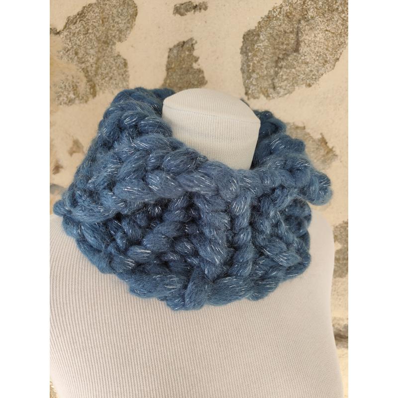 Tour de cou / snood modulable. Il peut se porter pointes en bas ou pointes en haut, façon faux col.