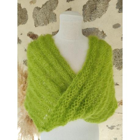 Depuis le collier sautoir, il vient se lover ensuite tout en délicatesse sur vos épaules pour déposer la douce chaleur de son coloris vivifiant plancton végétal.