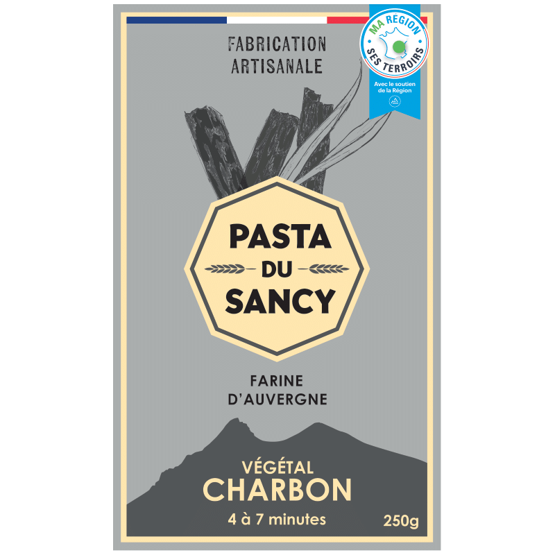 Ingrédients : Farine de blé tendre locale (gluten), eau, charbon végétal (2%).