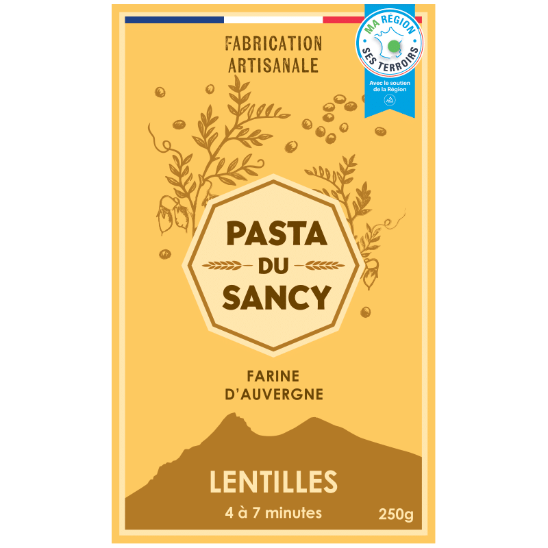 Ingrédients : Farine de blé tendre locale (gluten), eau, lentilles (3%).