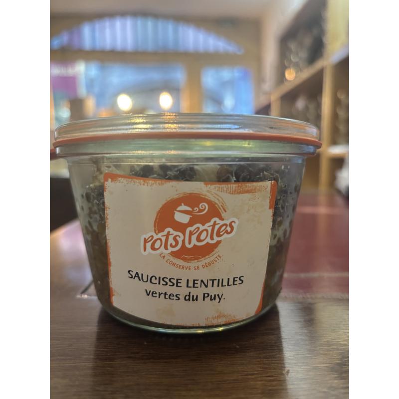Redécouvrez un grand classique de la gastronomie auvergnate avec notre Saucisse Lentilles artisanale en format individuel. Préparée avec des lentilles vertes AOP du Puy-en-Velay et des saucisses mijotées lentement dans un bouillon parfumé au vin blanc, ail, céleri, laurier et clou de girofle, cette recette généreuse et savoureuse vous transporte au cœur du terroir vellave.