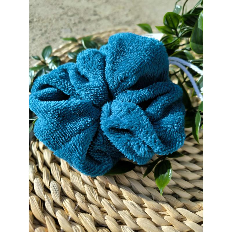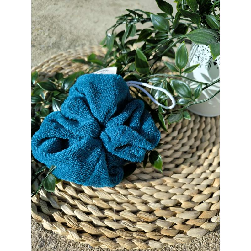 Confectionnée en éponge bambou moelleuse, elle crée une mousse généreuse sans frotter directement le savon sur la peau. Utilisation simple : fais mousser ton gel douche sur la fleur (ou frotte-la légèrement sur un savon solide), nettoie en douceur, puis rince et suspends pour accélérer le séchage.