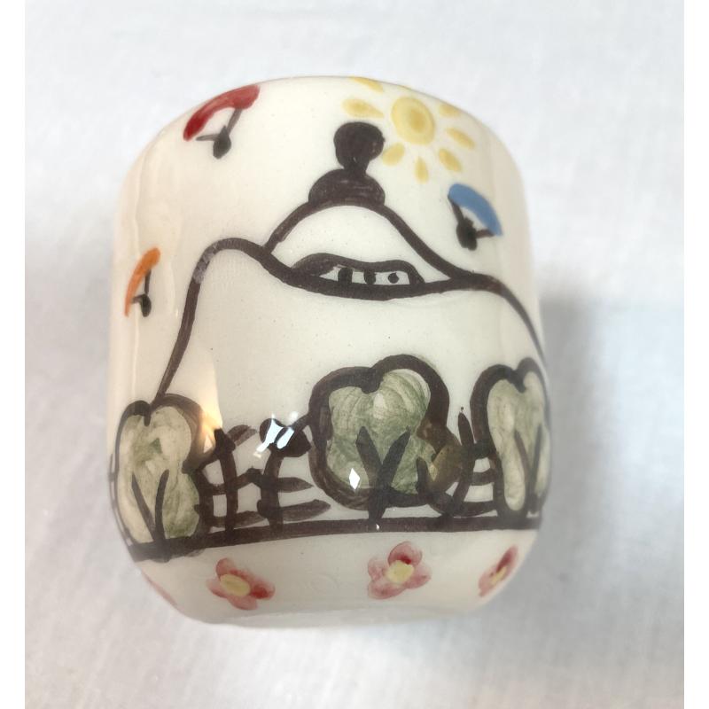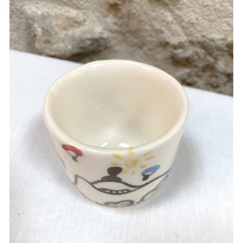 Entièrement fabriquée à la main en céramique blanche décorée d'engobes et d'émail transparent de potier.