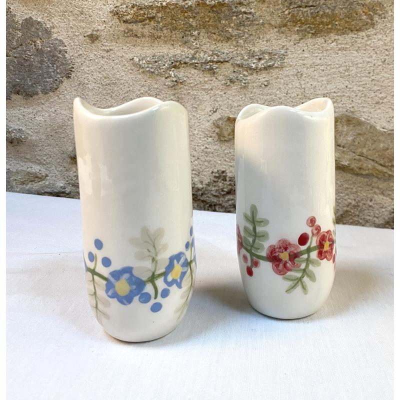 Vase soliflore à petites fleurs rouges ou bleues