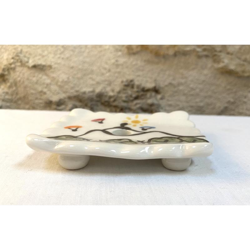 Entièrement fabriqué à la main en céramique blanche décorée d'engobes et d'émail transparent de potier.