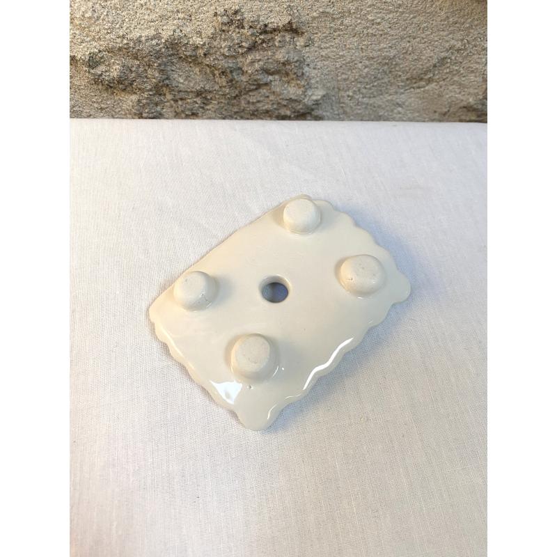 1 trou et 4 pieds permettent à l’eau de s’évacuer et au savon de sécher afin qu’il se conserve plus longtemps.