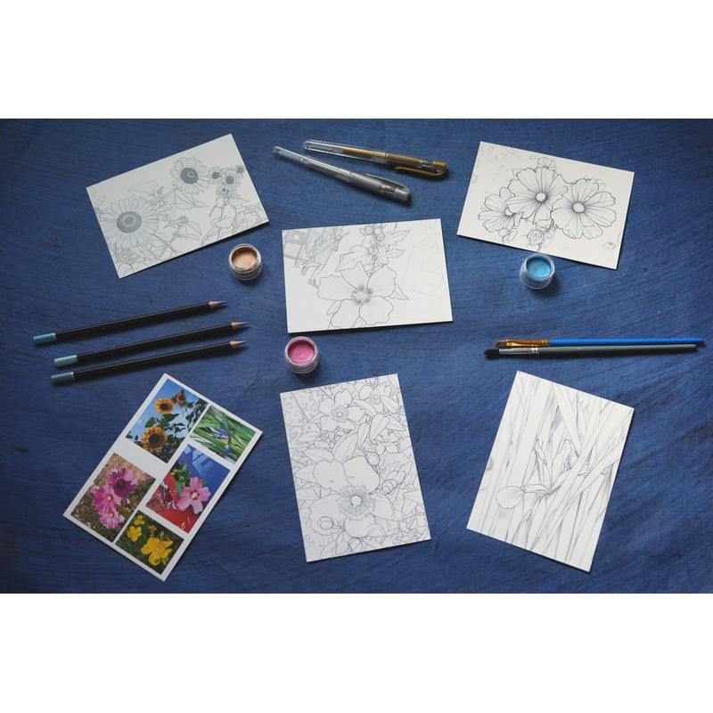 Lot de 5 cartes postales à colorier de 10.5 x 14.8 cm dont le thème est Floral.