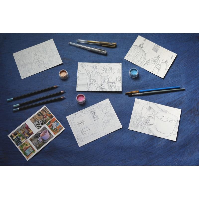 Lot de 5 cartes postales à colorier de 10.5 x 14.8 cm dont le thème est Insolite.