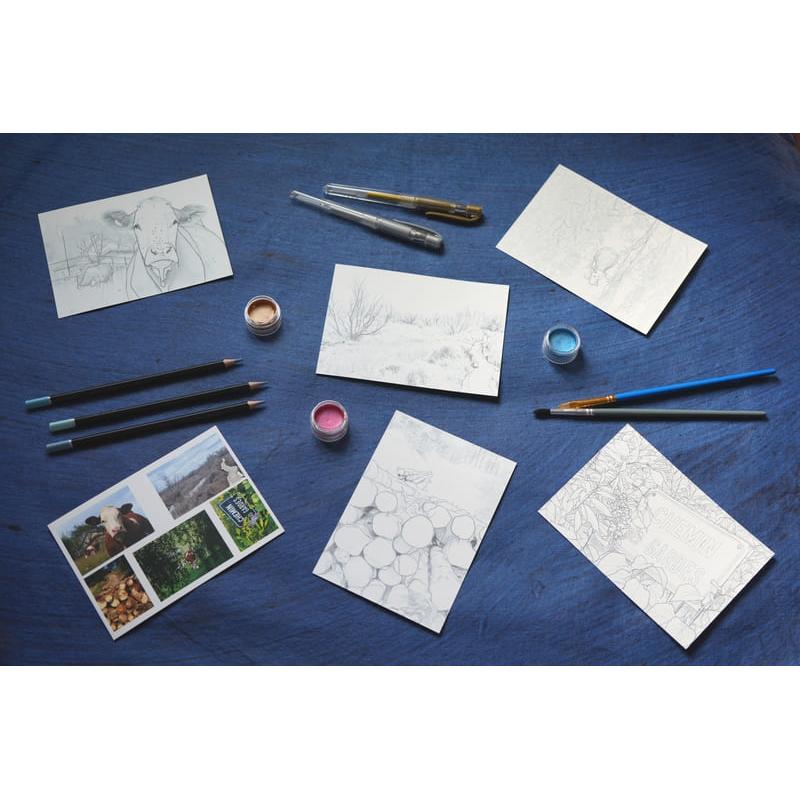 Lot de 5 cartes postales à colorier de 10.5 x 14.8 cm dont le thème est Rural.