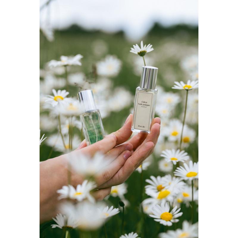 Ici là débute votre aventure olfactive, laissez-vous emporter par les paysages d’Auvergne, sillonnez les sous-bois de ces forêts centenaires, appréciez la fraîcheur de ce cocon se déposer délicatement sur votre peau, glanez quelques narcisses à la beauté soudaine caressant vos évents, gravissez les puys où un vaste silence à couper le souffle règne et respirez l’air pur tel une promesse d’étreintes à la cime des volcans.