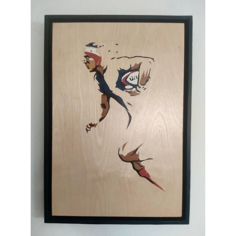 Marqueterie Rugbyman bleu blanc rouge fond clair
